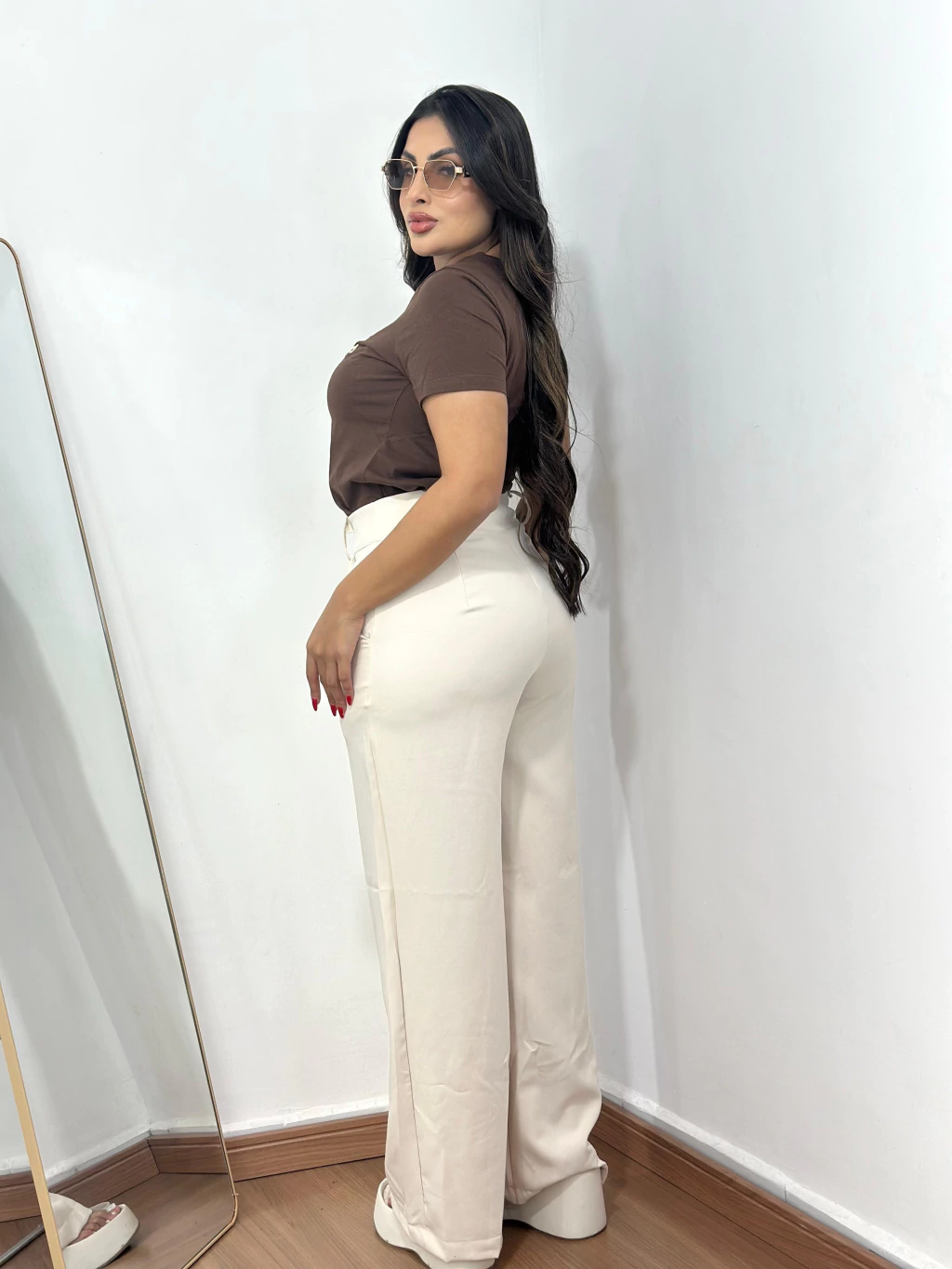 Nossa calça Pantalona em alfaiataria é uma peça sofisticada e moderna para o seu guarda-roupa. Com um padrão chique, adicionando um toque de estilo único ao seu visual. Possui passantes para cinto e bolsos frontais funcionais, proporcionando praticidade e elegância.