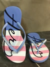 Possui tira com logo e palmilha estampada.